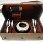 This set included filters for both color and black-and-white photography, as well as portrait lenses to fit the Reflex. A top grain cowhide leather case, fitted with belt loops and carrying strap, housed all the accessories.